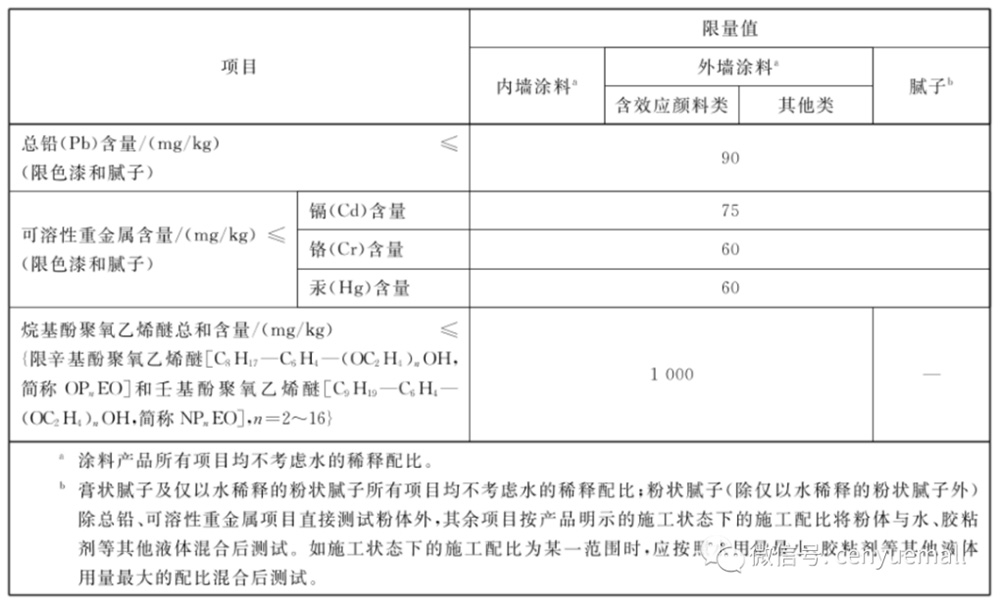 如果是墻面涂料及油漆可以參照《GB 18582-2020》,下表是水性內(nèi)外墻涂料的VOC限值及重金屬等限值要求??梢詾槲覀?cè)谫?gòu)買使用的時(shí)候,與商家提供的報(bào)告對(duì)照,是否達(dá)標(biāo)。