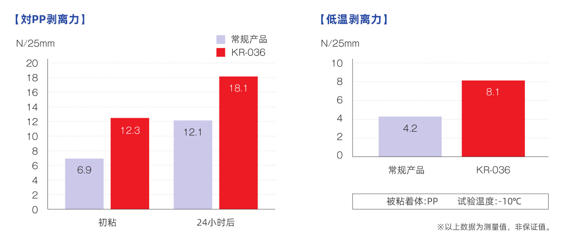 KR-036 PW/無紡布 | 0.13 | 18.4 | 與橡塑發(fā)泡材貼合性優(yōu),耐塑化劑 |